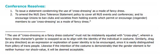 The UK National Union of Students (NUS) bans drag as fancy dress - except it doesn't. picture
